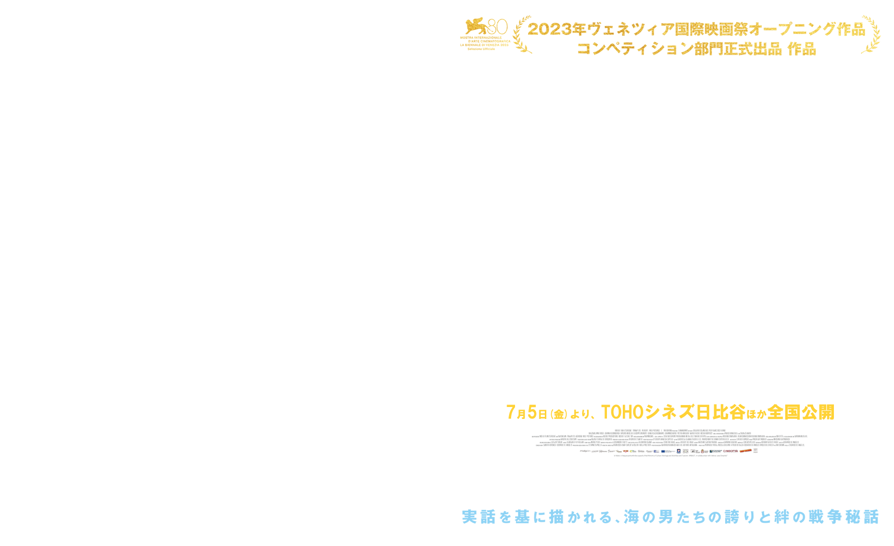 2023年ヴェネツィア国際映画祭オープニング作品。本作は、第二次大戦中、イタリア海軍潜水艦コマンダンテ・カッペリーニが沈めた敵国船の乗組員を救助したという実話を基に、戦時下においても決して失われることのない海の男たちの誇りと絆(シーマンシップ)を描いた重厚な戦争秘話。イタリア海軍の全面協力を得て実物大の潜水艦コマンダンテ・カッペリーニを再現。CGでは表現できない本物の重厚な質感とクルーたちの過酷な勤務描写が、潜水艦映画の傑作『U・ボート』と比肩するクオリティを堅持し、「潜水艦映画」に目の肥えた観客たちを唸らせるだろう。監督は本作で2度目のヴェネツィア国際映画祭コンペティション部門に選出されたエドアルド・デ・アンジェリス。主演のサルヴァトーレ・トーダロ艦長を演じるのは数々のイタリア映画の巨匠たちに重用されてきた名優ピエルフランチェスコ・ファヴィーノ。